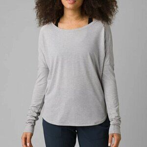 Prana Rogue Long Sleeve Grey Heather Top Shirt Twist Back Athletic Womens Sz XL