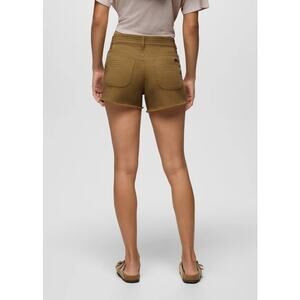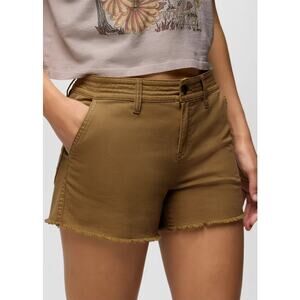 Prana Sancho Short 4" Womens 2 Retro Olive Mid Rise Garment Dyed Raw Hem Stretch