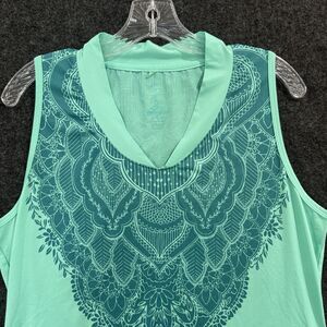 Prana Sasha Tank Top Women's Large Aqua Green Mandala Print Made USA Athletic