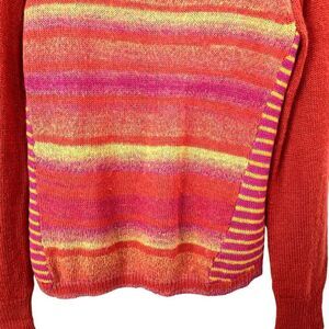 Prana Seffi striped wool blend knit sweater Size XL red pink