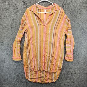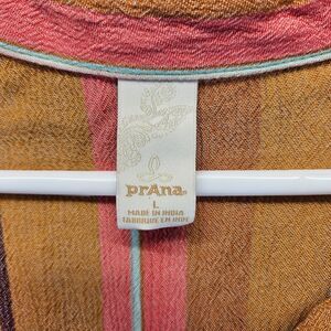 Prana Shirt Blouse Women Size Large Yellow Striped Long Sleeves Button Up Tunic