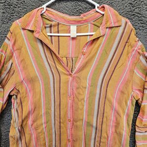 Prana Shirt Blouse Women Size Large Yellow‎ Striped Long Sleeves Button Up Tunic