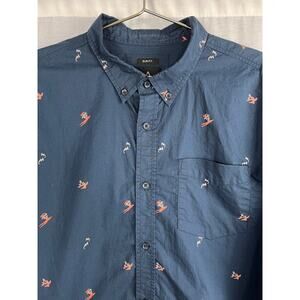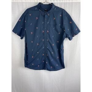 Prana Shirt Broderick Slim Fit Short Sleeve Palm Shark Novelty Summer Vacation