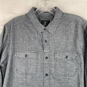 Prana Shirt Mens S Gray Long Sleeve Button Up Hemp Blend Hiking Outdoors Pockets