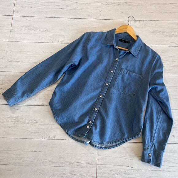- Prana Women's Washed Out Denim Chambray 100% Organic Cotton Shirt