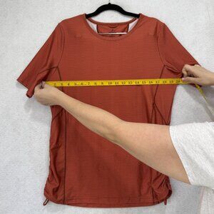 Prana Shirt Womens XL Red Striped Short Sleeve Stretch Side Ruched Active Top