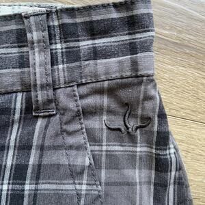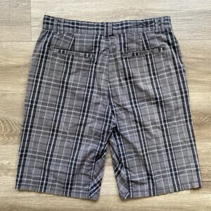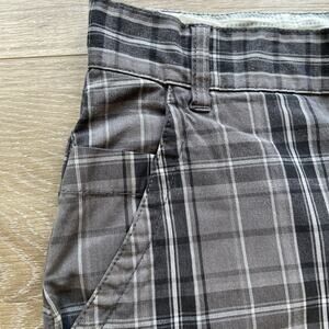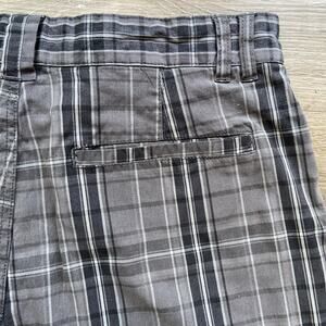 Prana Shorts Mens 34” Gray Plaid Chino Cotton Lycra 12” Inseam Flat Front Pocket