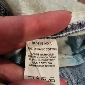 Prana short-sleeved, button-up shirt. Size large and made of 100% cotton. Vertical stripes. One chest pocket.