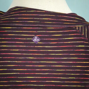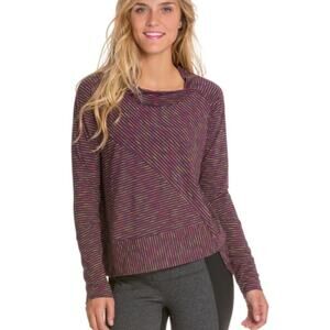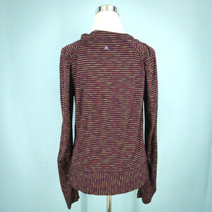 Prana Size Medium M Alicia Burgundy Stripe Asymmetrical Hem Long Sleeve Crew Neck Active Kit Top Shirt