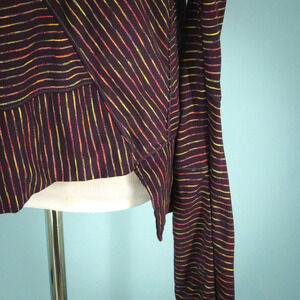 Prana Size Medium M Alicia Burgundy Stripe Asymmetrical Hem Long Sleeve Crew Top