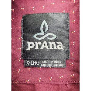 Prana Size XL Mens Burgundy Triangle Pattern Long Sleeve Neck Hem Logos Shirt