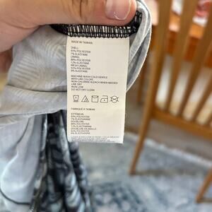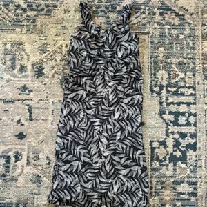 In excellent condition. No flaws or signs of wear. Size medium. In the color/pattern "Black Springtime". Black/ gray floral print. Scoop neck. Back cutout detail. Shelf bra with removable cup inserts.