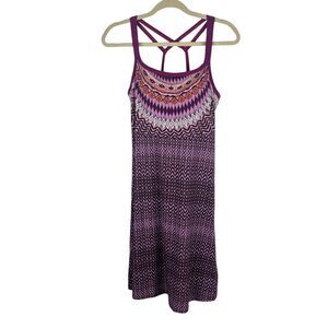 Prana Sol Cora Dress Size S Violet Chevron Print Yoga Athleisure Comfort Beach