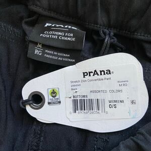 Prana Stretch Zion Convertible Pant Women's M Black Elastic Waist Zip-Off Legs