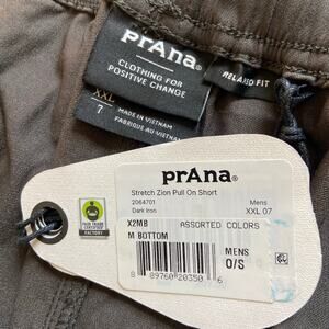 Prana Stretch Zion Pull-On Short 7" Mens XXL Dark Iron 5" Relaxed Fit Adjustable