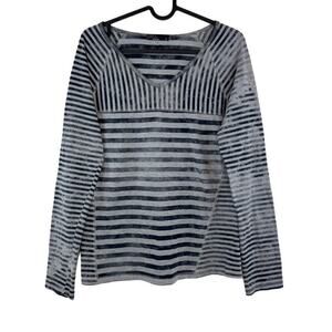 Prana Stripe Jaime Long Sleeve Grey Black V Neck Top Size Small Gorpcore Grunge
