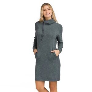 Prana Sunrise Cowl Neck Heathered Blue Gray Sweatshirt Dress Large