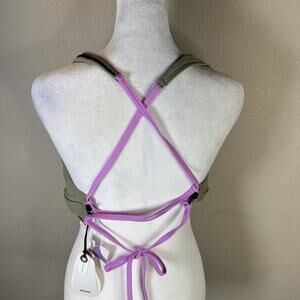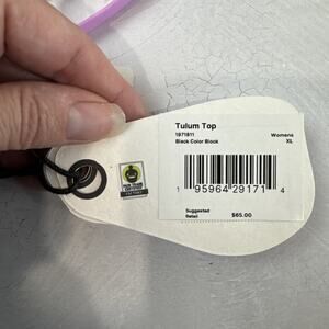 Prana Swim Top XL Black Pink Color Block Fair Trade Athletic Tie Back