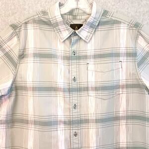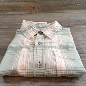 Prana Tamrack Shirt Size M Short Sleeve Button Front Organic Cotton Beachy