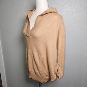 Prana Tan Lightweight Knit Hoodie Sweater with Dolman Half Sleeve Small