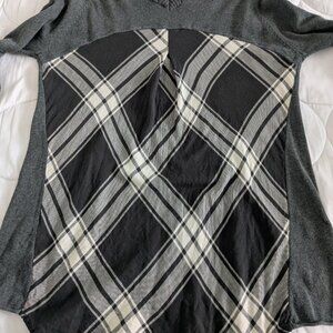 Prana Top Women's Medium Charcoal Colorblock Natalia Sweater Plaid Long Sleeve