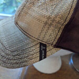 Prana Trucker Hat Straw Weave Woven Flex Baseball Canvas Dad Hat Brown Unisex