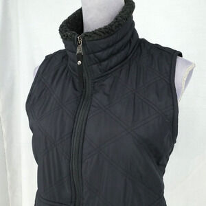 Prana Vest Womens Small Black Quilted Full Zip Sherpa Lined Mock Neck Zip Pocket