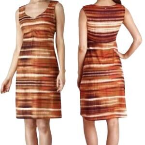 Prana Viana Mini Dress Sunset Abstract Stripe Pattern Jersey Knit Stretchy
