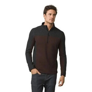 Prana Wentworth Cocoa Ribbed Knit Pullover Quarter Zip Sweater XL