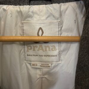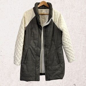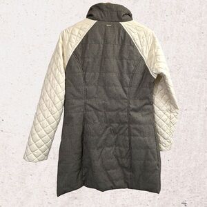 Prana White and Gray Puffer Jacket with Quilted Sleeves