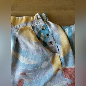 Cute abstract botanical print skirt with elastic waistband and side button closure