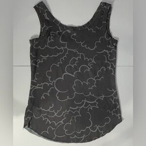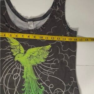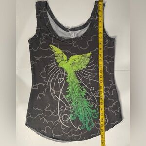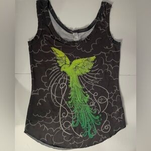 Prana Woman Tank Top Size Med Green Gray Lightweight Stretch Top Bird Graphic
