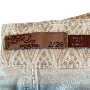 Prana Womens Beige Geometric Patterned Denim Pants Sz 2 waist 26 Cotton Blend