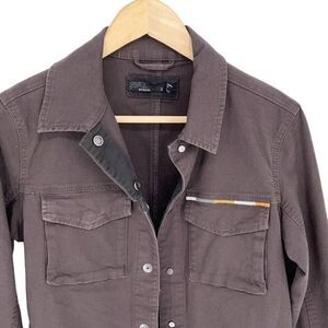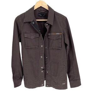 Prana Womens Button Front Organic Cotton Blend Canvas Pennington Jacket Clay Gray Small
