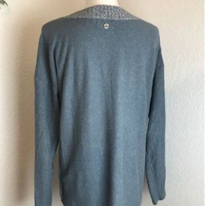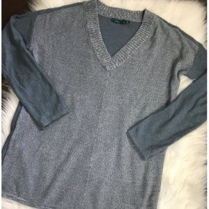 PrAna Women's Cedros Sweater Tunic Blue Color Block V-neck 100% Organic Cotton M