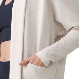 Chic cream shrug with open front. Soft and cozy material. Perfect for layering.
