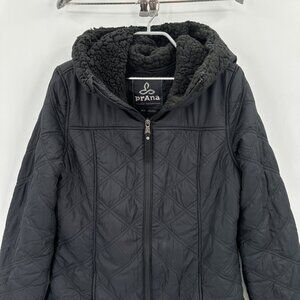 Prana Women's Esla Hooded Coat with Sherpa Lining size S Small Full Zip Black