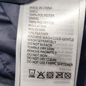 Pre-owned and in good condition with some stains/marks on the fabric. I have included photos of the marks. None of them particularly catch the eye but are from normal wear from camping or hiking. Initials of former owner are on the label. The insulation is 90% down and 10% feather.