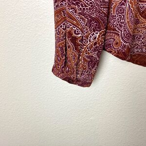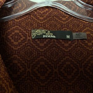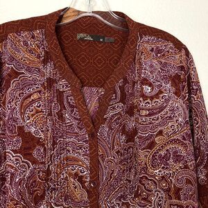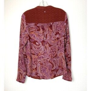 Prana Women's Evelyn Button Up Blouse Size M Brown Paisley Button Cuff Sleeve