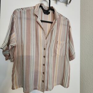Prana Women's Iguala Short Sleeve Button Up Top, Striped, Size XS