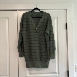 Prana Women's Long Henley Sweater Tunic Green Blue Stripes Size Large