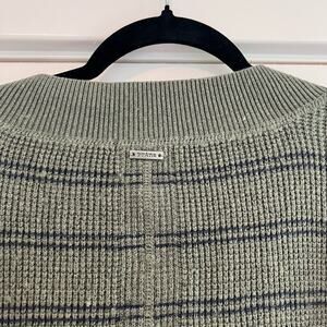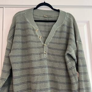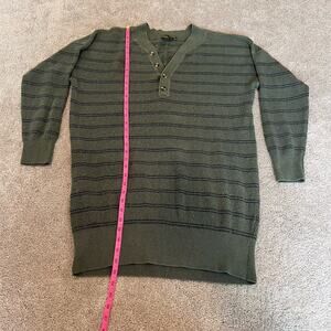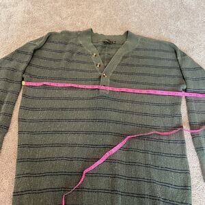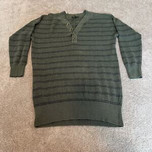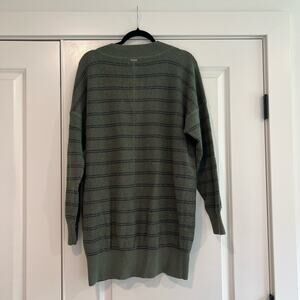 All orders ship within 1-3 business days. This women's long tunic sweater is made by Prana. Color is green with blue stripes. Size is L. Good condition, does show some wear. Fabric is unknown. Make me an offer! Although clothing is not visibly soiled we recommend washing all preloved items before wear.A887