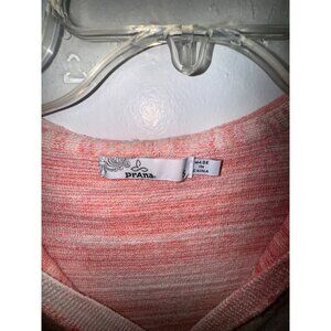 Prana Womens Long-Sleeve Hooded Sweater in Small. Boho Hippie Grunge style with stretch. Pink and white colors. Comfortable cotton and polyester blend.
