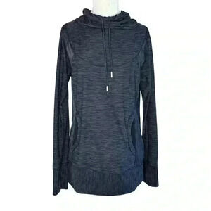 Prana Women’s Medium Long Sleeve Cowl Neck Pullover with Pockets Dark Gray Activewear