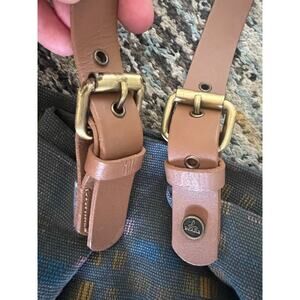 Made from organically grown cotton with vegetable tanned leather handles and buckles for visual interest; medium size stashes the necessities with room to spare"