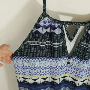 GUC: {Prana} Women's Nari Halter Mist Keyhole Athleisure Dress in Blue. Geometric Print. Lined. Very comfortable and Lightweight.