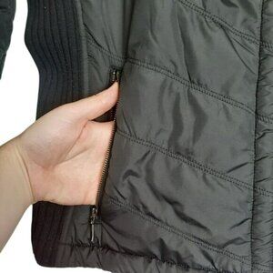 Prana Womens Quilted Jacket M Black With Sherpa Collar & Zipper Pockets