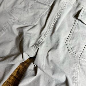 Stylish cargo shorts with ample pocket space. Perfect for casual outings. Preworn shorts in good condition. These pants are missing the zipper legs. Other than missing legs, there is no rips, tears, holes or stains.
