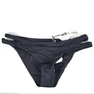 Prana Womens Sugar Shore Swim Bikini Bottom Size Large Black Peek-a-boo Waist