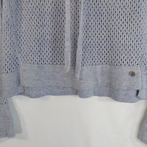 Prana Womens Pullover Sweater Size M Organic Cotton Blue Open Knit Funnel Neck Casual